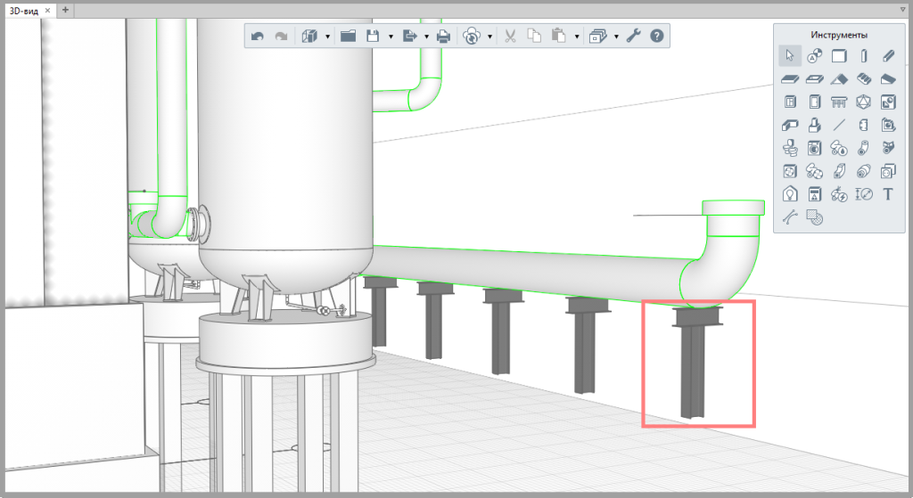 Кроме того, пользователь может моментально и точно расставлять необходимые элементы, например, опоры для труб, просто привязываясь к смоделированным трассам. Инженерное проектирование стало быстрее, точнее и удобнее.