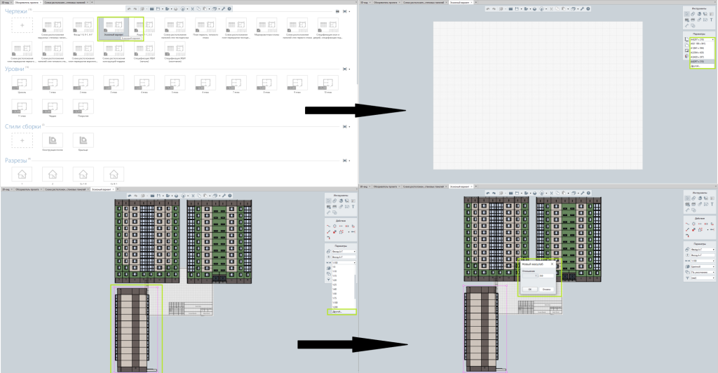 Разработчики Renga Software внимательно прислушиваются к просьбам пользователей и, следуя их пожеланиям, была добавлена в релиз возможность создания пользовательского масштаба. Теперь можно задавать любой нужный масштаб с сохранением пропорций. Эта возможность поможет решать специализированные задачи. Например, для подготовки альбома чертежей в формате А4: теперь легко разместить несколько планов и разрезов на одном листе, подобрав идеальный масштаб.