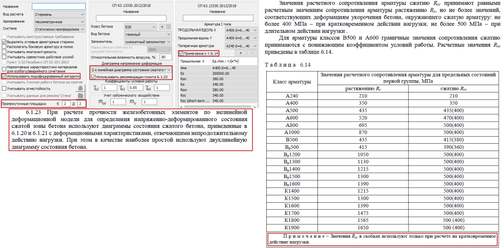 Для стандартного алгоритма расчета нормального сечения по прочности уточнены параметры используемой двухлинейной диаграммы работы бетона.
