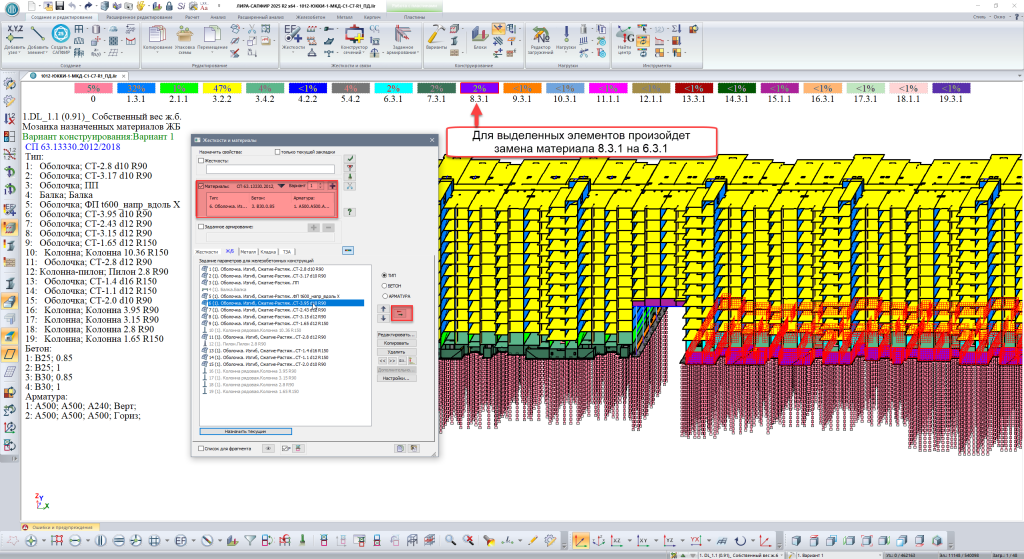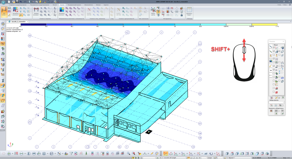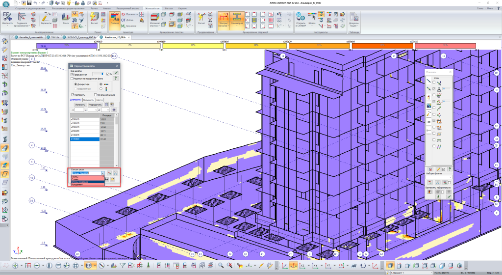 Добавлена настройка расположения шкалы результатов для визуализации результатов расчета (в расчетной модели САПФИР), в том числе, и для визуализации результатов расчета Экспертизы ЖБК.