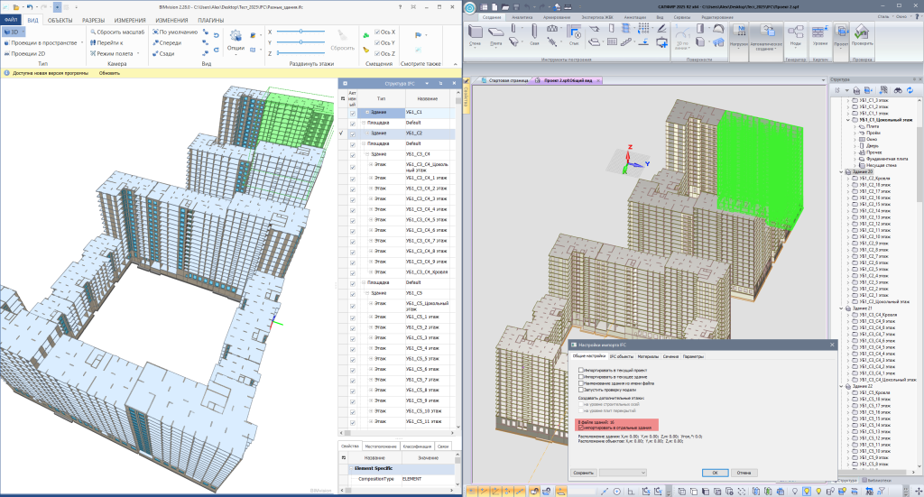 При импорте/экспорте нескольких зданий формата IFC добавлена возможность импортировать/экспортировать их в отдельные здания.