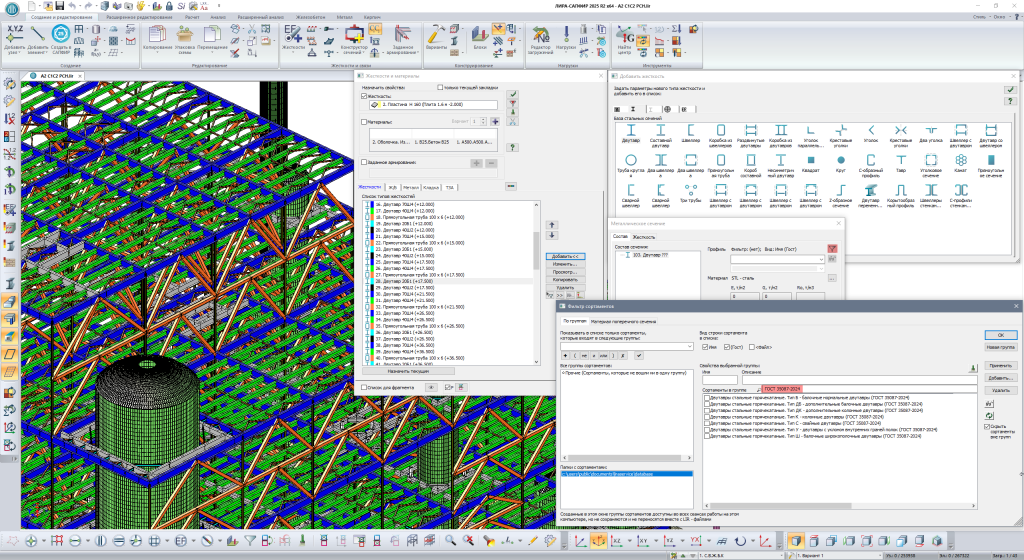 Добавлен фильтр сортаментов по сформированным группам. После его применения в списках назначения параметров металлических сечений или в перечне сортаментов системы Редактируемый сортамент будут отображаться только сортаменты из выбранных групп.