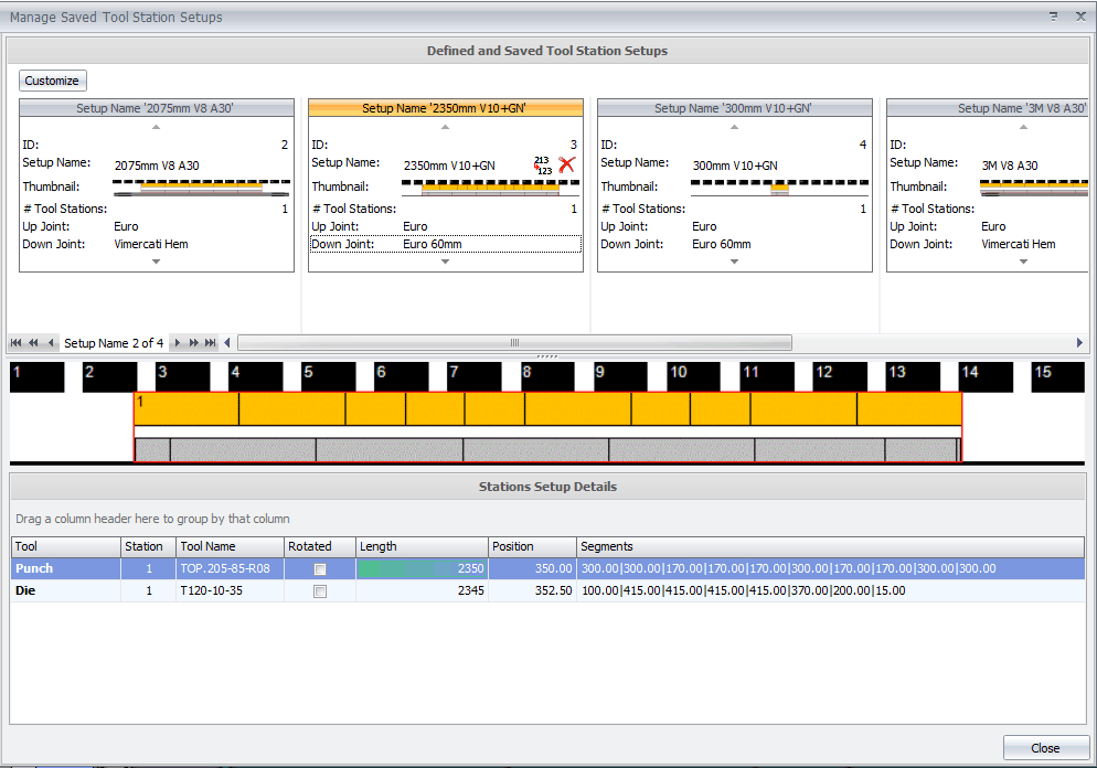 MBend ищет решение с минимальным количеством станций и минимальным количеством сегментов инструментов, позволяющее выполнить последовательность гибки.