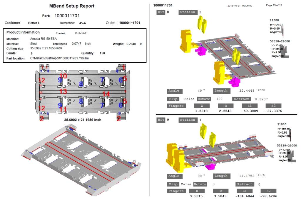 Комплексные отчеты MBend содержат всю информацию, необходимую оператору для настройки инструментов и гибки детали.