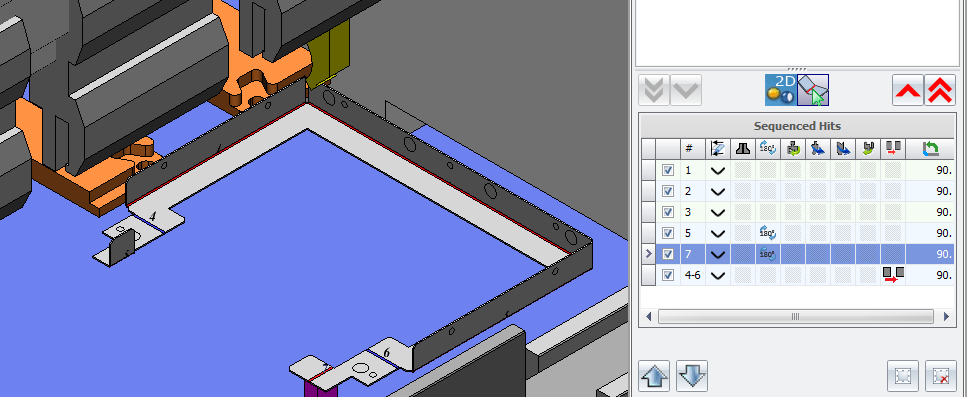 В дополнение, MBend может показывать манипулирование деталью – перемещение детали между гибами. Эта функция используется для просмотра поворотов и переворотов детали, а также ее перемещения между станциями инструментов.